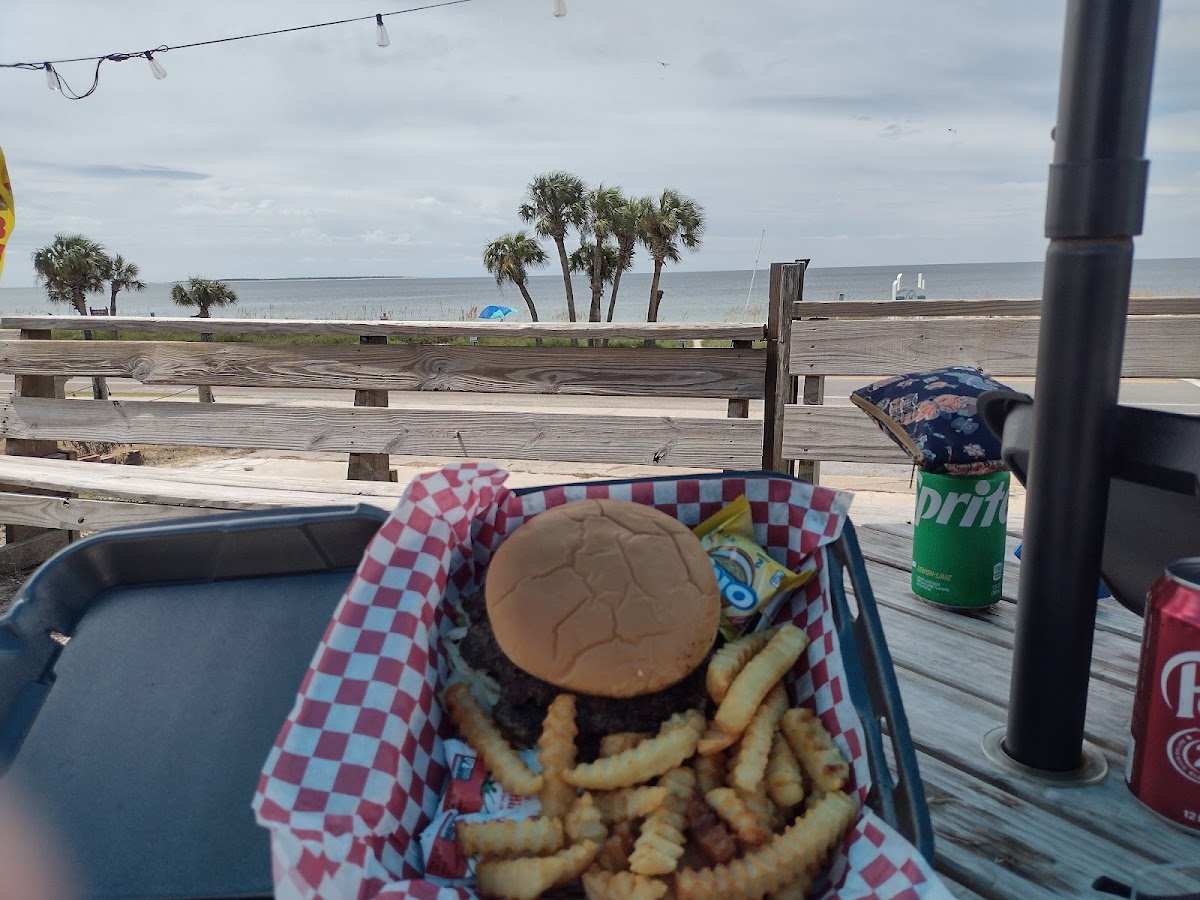 We chose to eat lunch at Richey's because of the great reviews, and we were not disappointed. I ordered the burger wrap, which was a guilt-free delight. No frozen patties here. A very tasty burger. The side of mango coleslaw was excellent. My friend raved about her single burger. It was a warm day, but a nice breeze blew on the back porch, offering a pleasant view of the bay and a nearby pond. Two employees checked on us to make sure everything was okay. We enjoyed our lunch with birds singing in the cool breeze. Worth checking out.